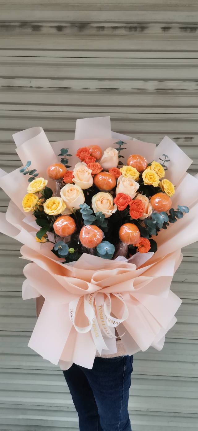 香槟玫瑰+沙糖桔花束
